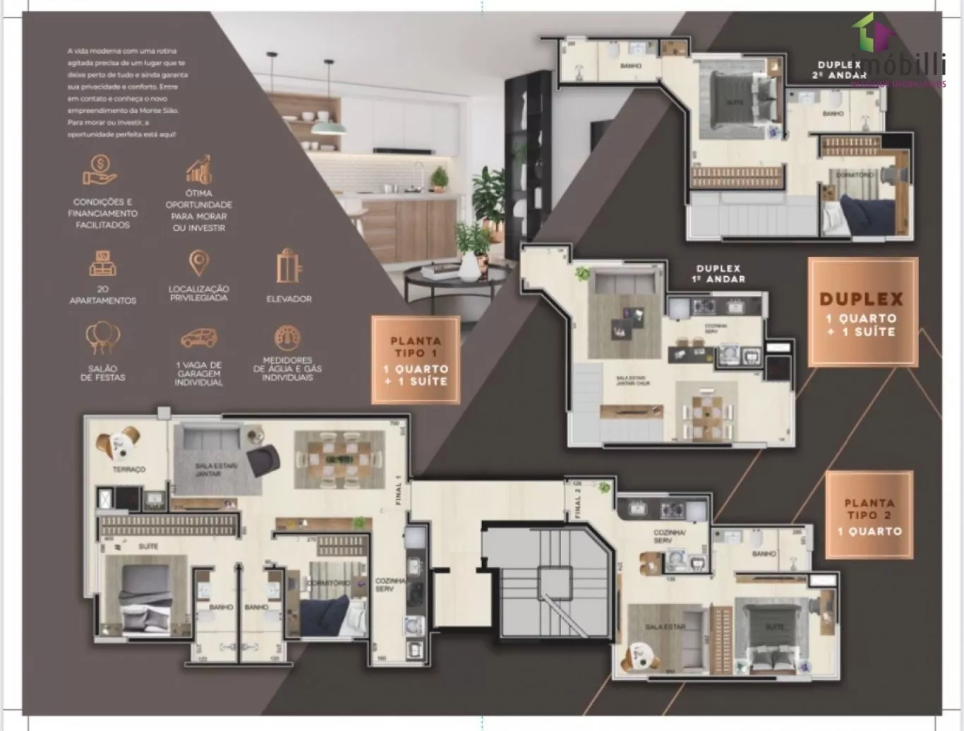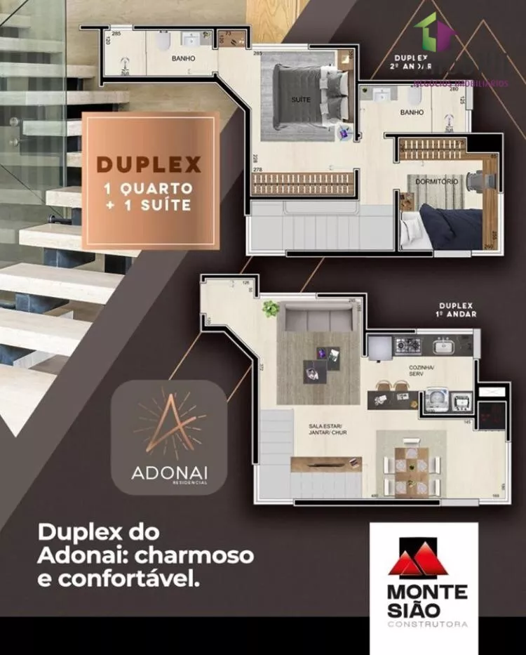 Duplex sendo 01 suíte + 01 Quarto.