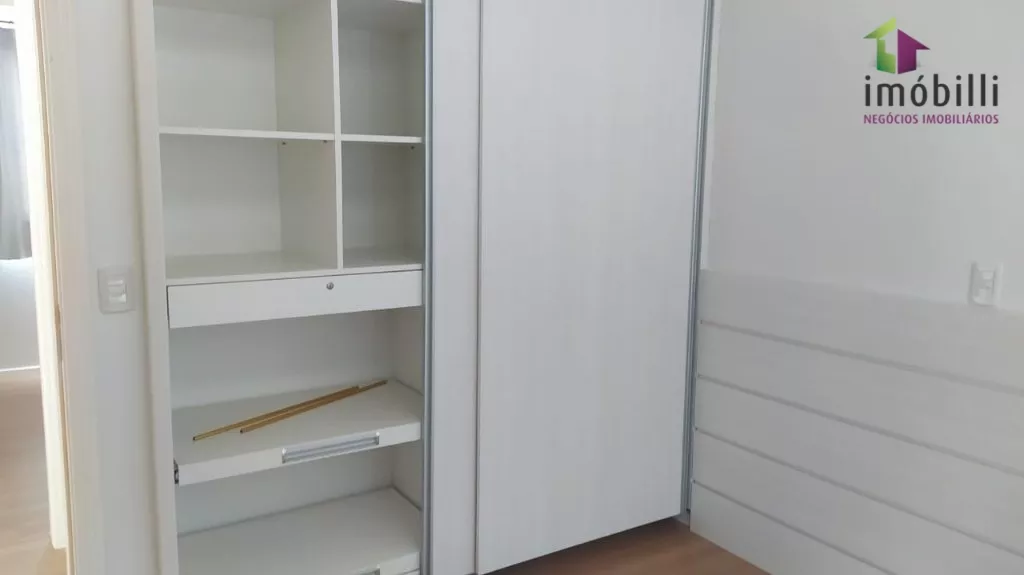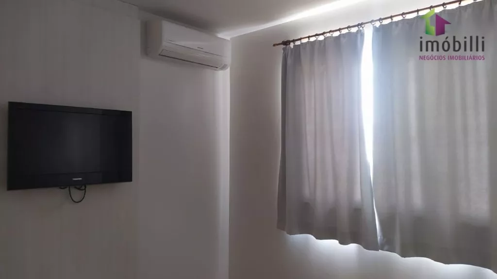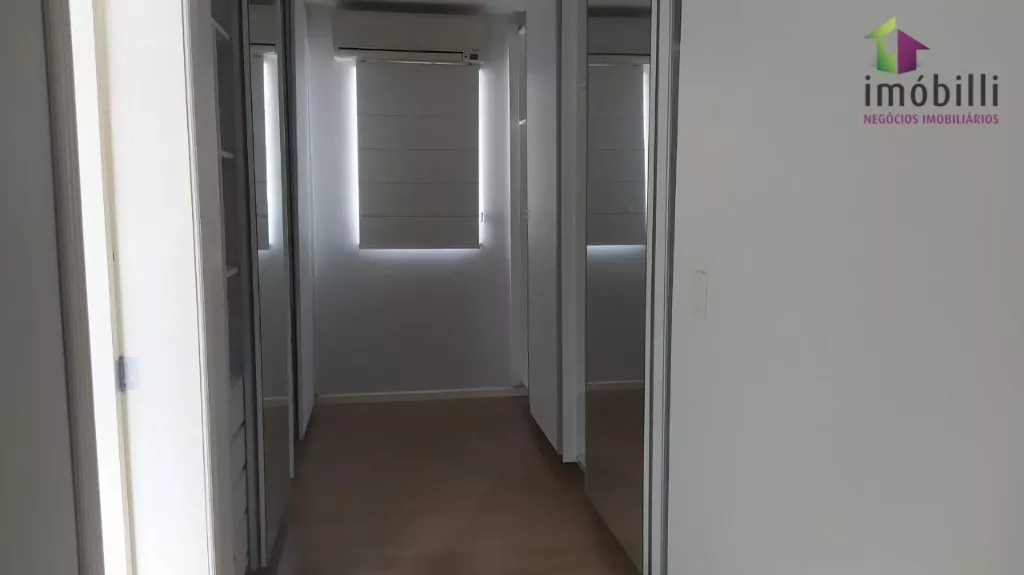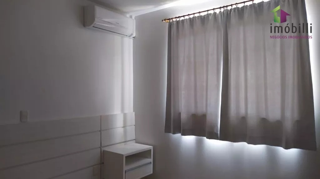 Com uma suíte com closet e sacada e ar condicionado, dois quartos com roupeiros embutidos e ar condicionado, banheiro social.