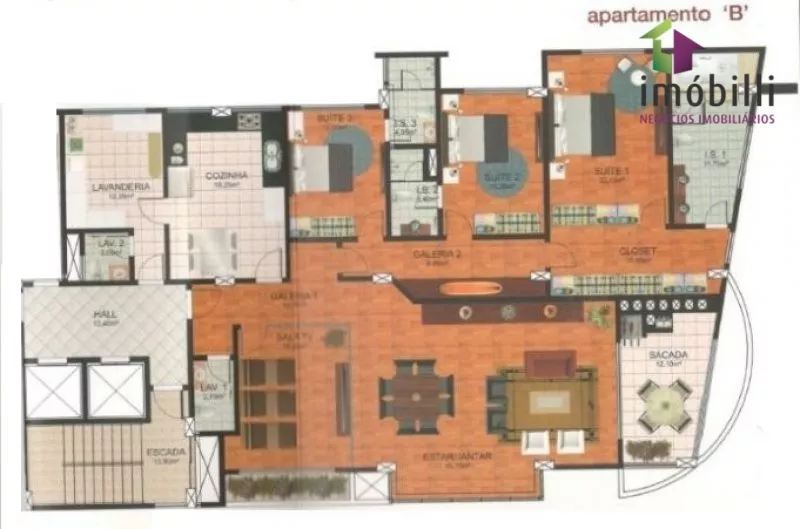 Com 419,80m2 de área privativa e 554,45m2 de área total.