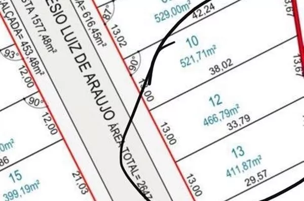 Com 21,03m de frente (Face Leste), sendo lado esquerdo 36,12m de comprimento, os fundos do terreno tem 4,02m e ao lado direito 31,86m, fica em formato de Cone, bem próximo ao PB Shopping, local alto, plano.