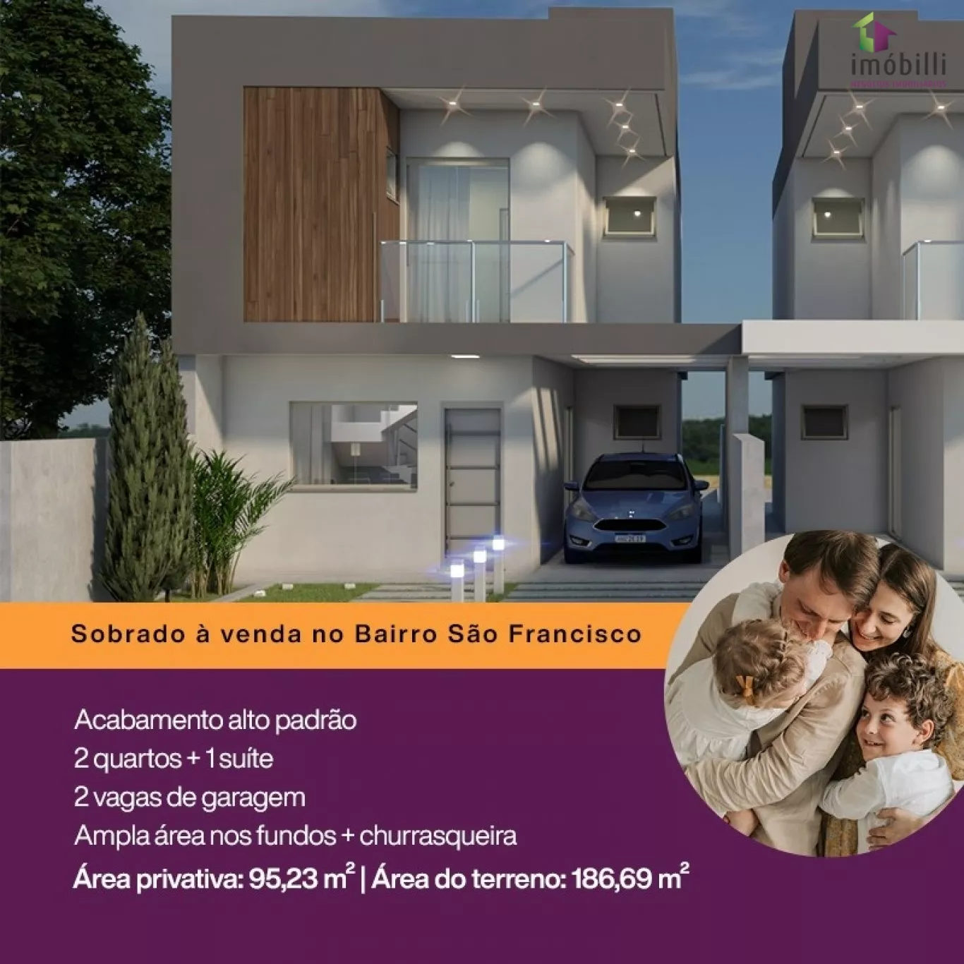 Com 95,23m2 de área construída, terreno com 186,96m2.