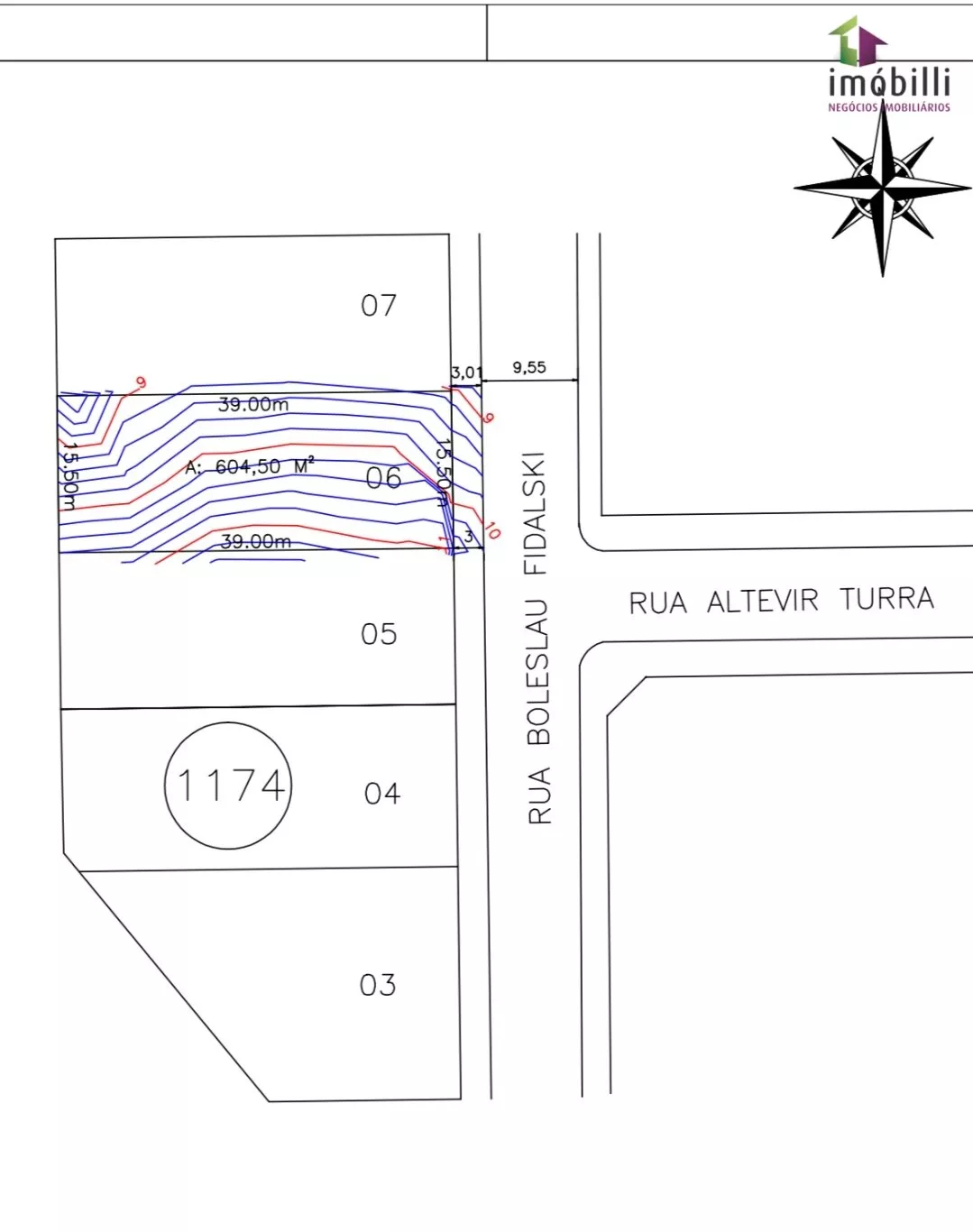 Com 15,50m de testada, sendo 39,00m de comprimento, face Leste, acima do nível da rua, local alto com vista para a cidade, divisa aos fundos com a TV Celinauta, ao entorno casas novas com ótimo padrão de acabamento, rua tranquila, bem residencial, acostamento para veículos nos dois lados da rua. Contém projeto de residencia completo.