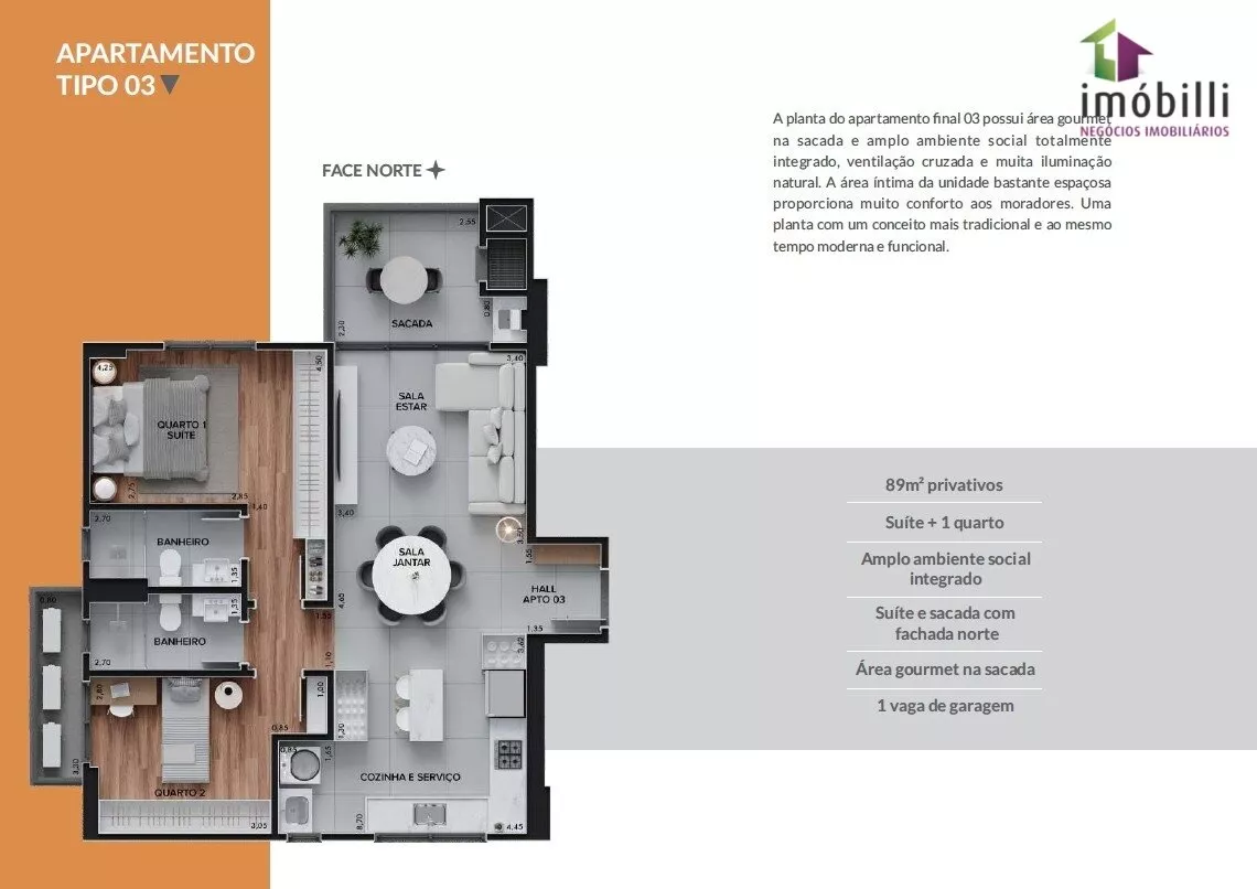 Com 89m² de área privativa.