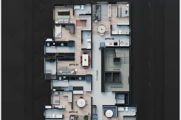 Apartamento 803 Com 01 suíte + 01 quarto, sala p/02 ambientes, cozinha, área de serviço, bwc, 01 vaga de garagem individual.